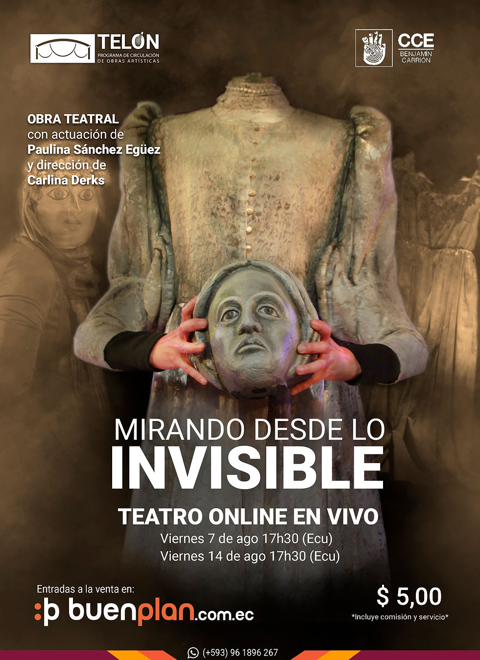 Este trabajo se encuentra entre las once mejores obras escogidas para Telón 2020, proyecto de la Casa de la Cultura Ecuatoriana que expone una cuidadosa selección de propuestas teatrales para todo el año. La CCE convocó el pasado enero, a nivel nacional, a elencos de teatro a postular en esta iniciativa.